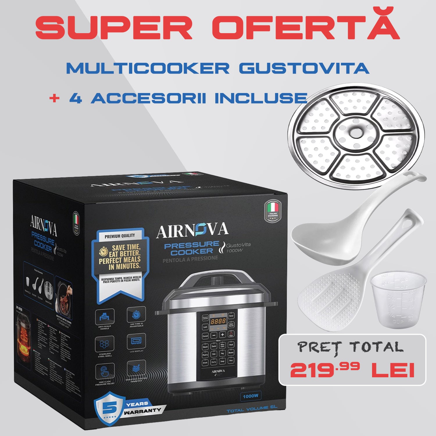 Multicooker-ul AIRNOVA® GustoVita mi-a schimbat complet rutina din bucătărie. Este rapid, eficient și foarte ușor de folosit. Funcțiile multiple de gătire sunt un real ajutor!