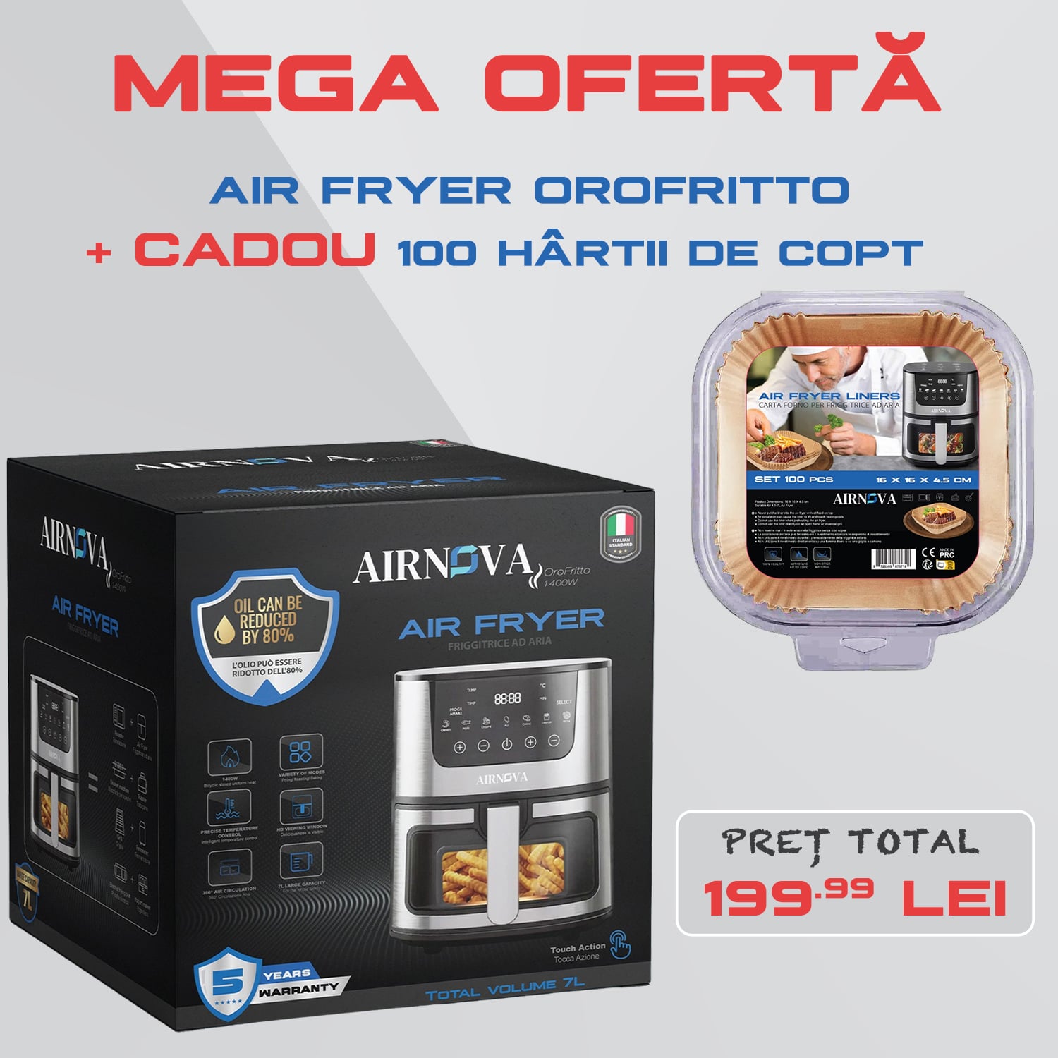 Am cumpărat Air Fryer-ul AIRNOVA® și sunt absolut încântată! Mâncarea iese crocantă și gustoasă, iar faptul că gătesc fără ulei este un mare plus pentru sănătate. Îl folosesc zilnic!
