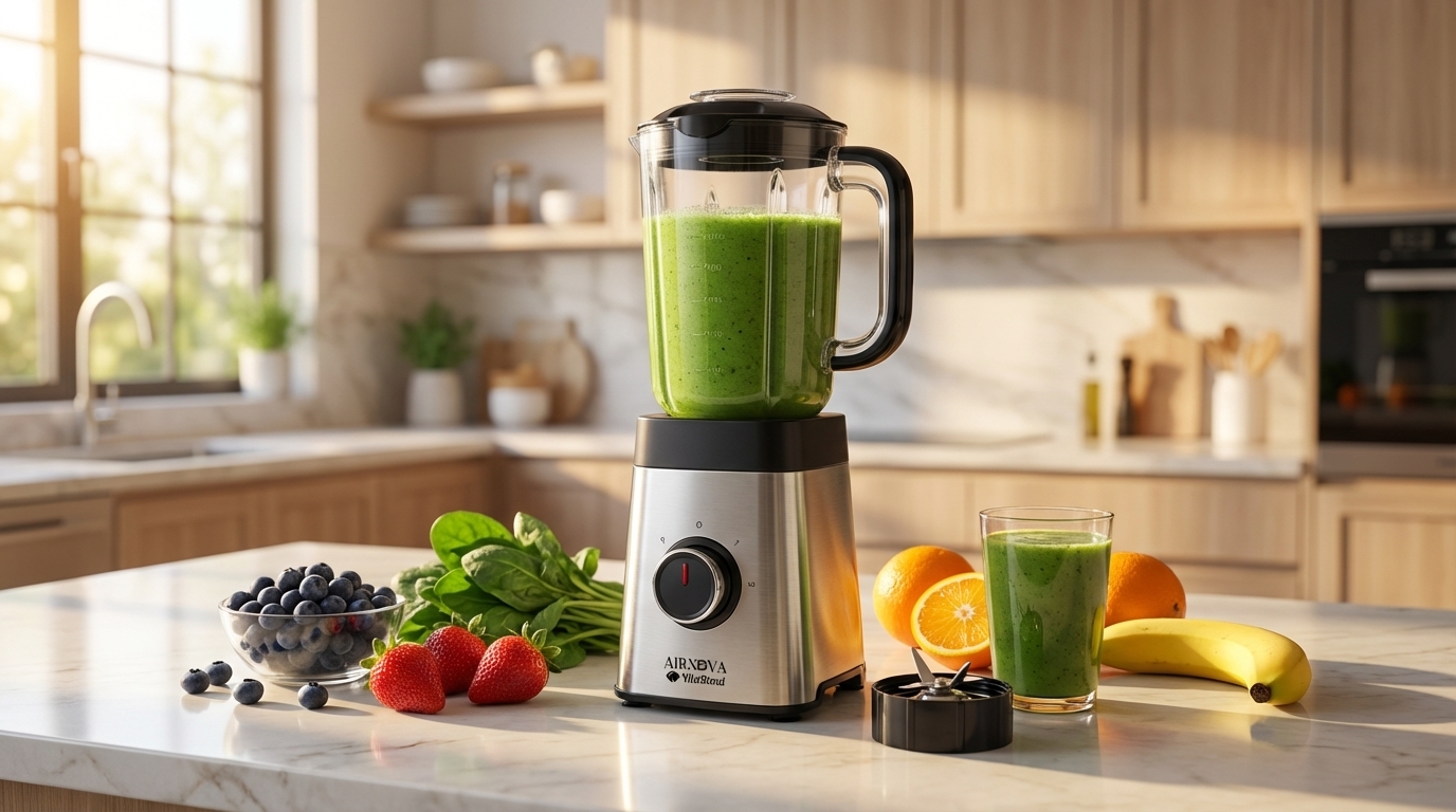Blender multifunctional AIRNOVA® VitaBlend BLD-02, 1000W, 1.25L, baza cuplu ridicat, lame inox, functii multiple: smoothie, lapte soia, gheata, maruntire, 2 viteze