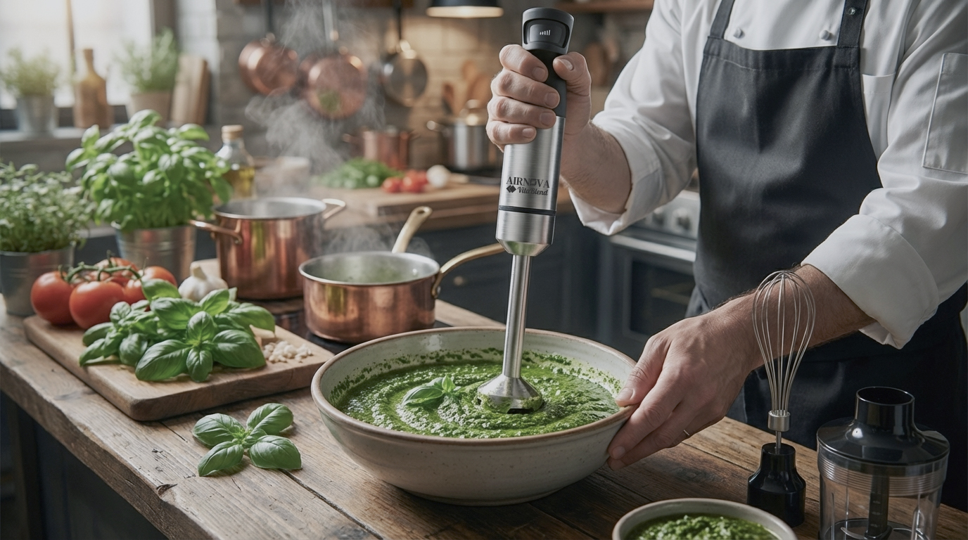 Versatilitate 6-in-1: Nu este doar un simplu blender. Functiile sale includ: blendire, preparare smoothie, tocare, maruntire, amestecare si batere. Este recomandat pentru: smoothie-uri, supe creme, piureuri, sosuri, maioneze, mancare pentru bebelusi (baby food), dar si pentru maruntitul nucilor sau al carnii.