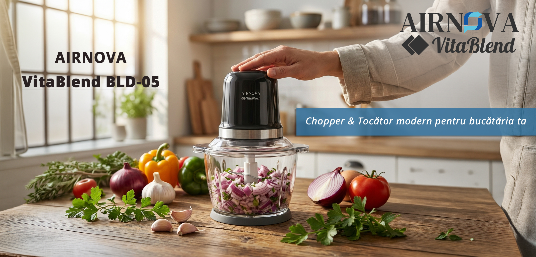 Transforma pregatirea ingredientelor intr-o experienta rapida si fara efort cu AIRNOVA® BLD-05. Acest tocator multifunctional combina puterea bruta cu precizia, fiind proiectat pentru a satisface nevoile celor mai exigenti bucatari amatori sau profesionali. De la maruntirea fina a legumelor pana la zdrobirea ghetii sau prepararea hranei pentru bebelusi, acest aparat devine rapid asistentul tau de incredere.