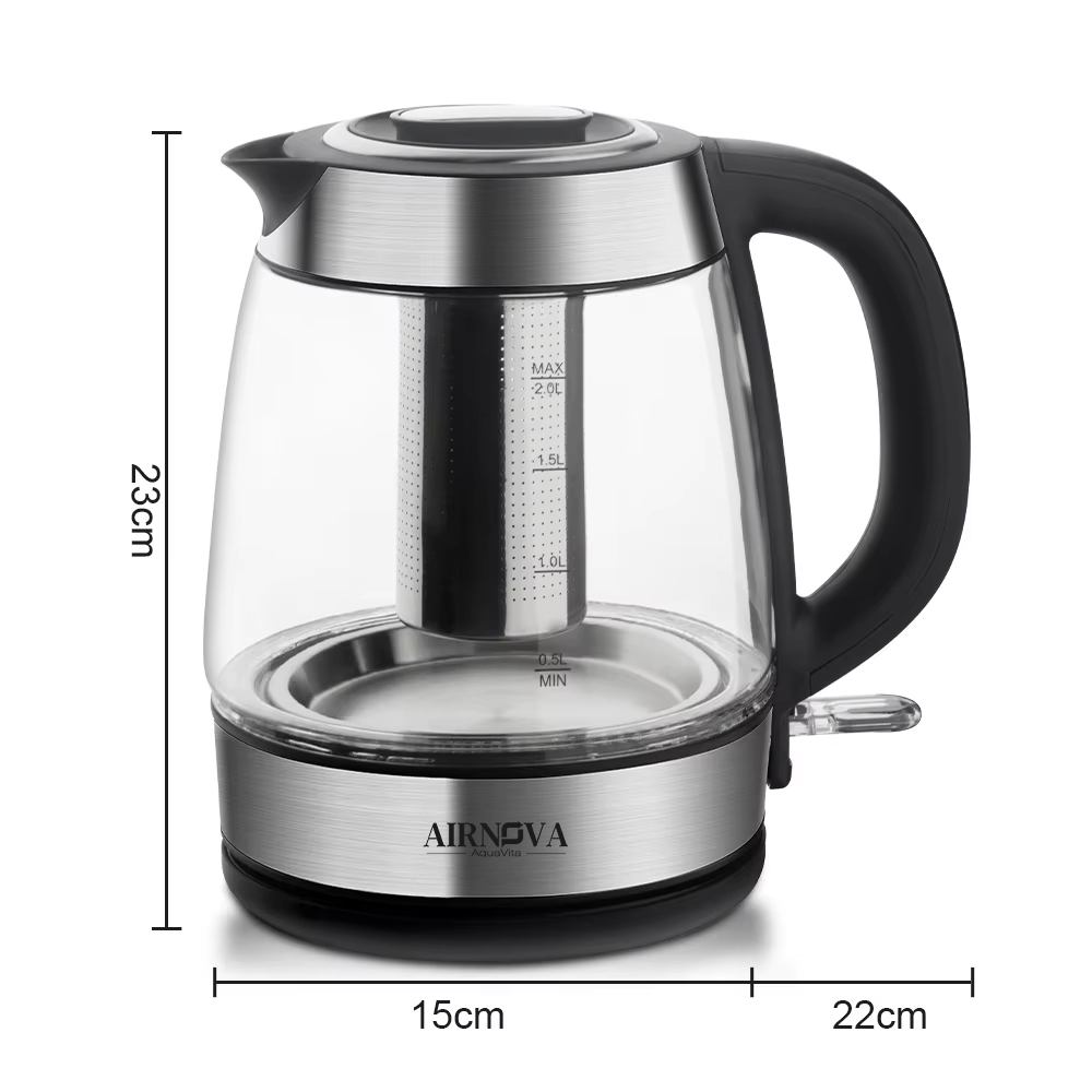 Descopera eleganta, puterea si functionalitatea fierbatorului electric AIRNOVA® AquaVita – creat pentru cei care apreciaza bauturile fierbinti preparate rapid, in siguranta si cu un plus de rafinament. Cu un design modern Negru/Inox si o capacitate generoasa de 2 litri, AquaVita este alegerea ideala pentru intreaga familie, birou sau orice spatiu in care confortul intalneste utilitatea.