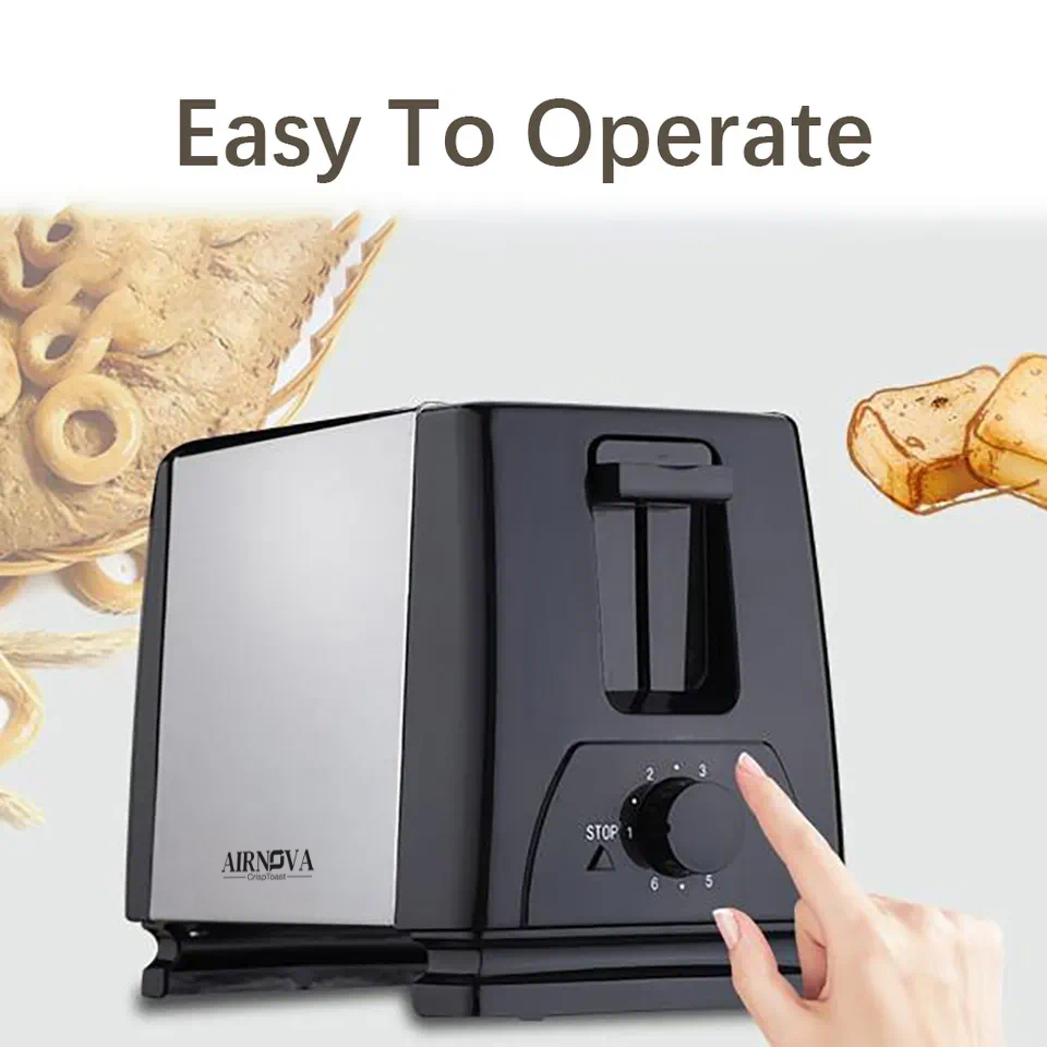 Transforma fiecare dimineata intr-o experienta placuta cu AIRNOVA® CrispToast, prajitorul de paine creat pentru cei care apreciaza simplitatea, eficienta si gustul perfect. Cu un design modern in nuante elegante de Negru & Inox, acest prajitor se integreaza impecabil in orice bucatarie – fie ea minimalista, contemporana sau retro.