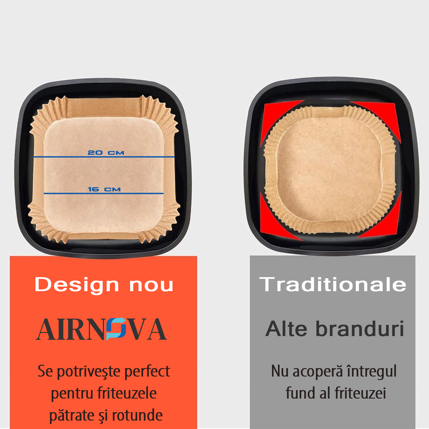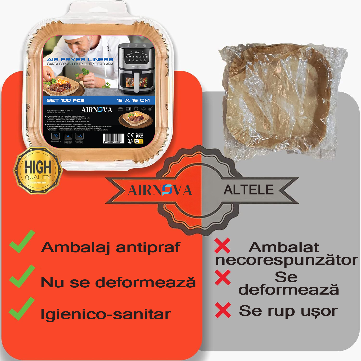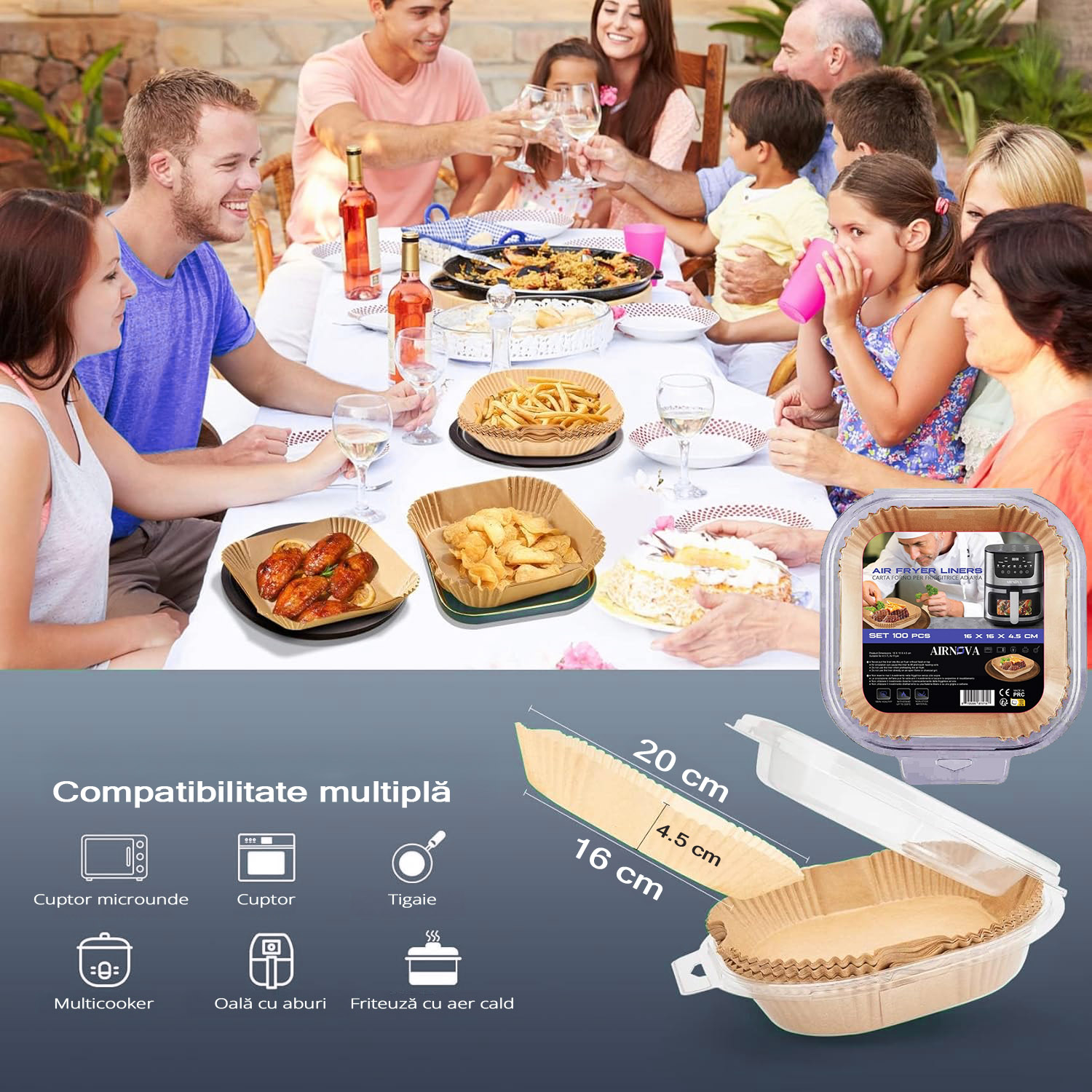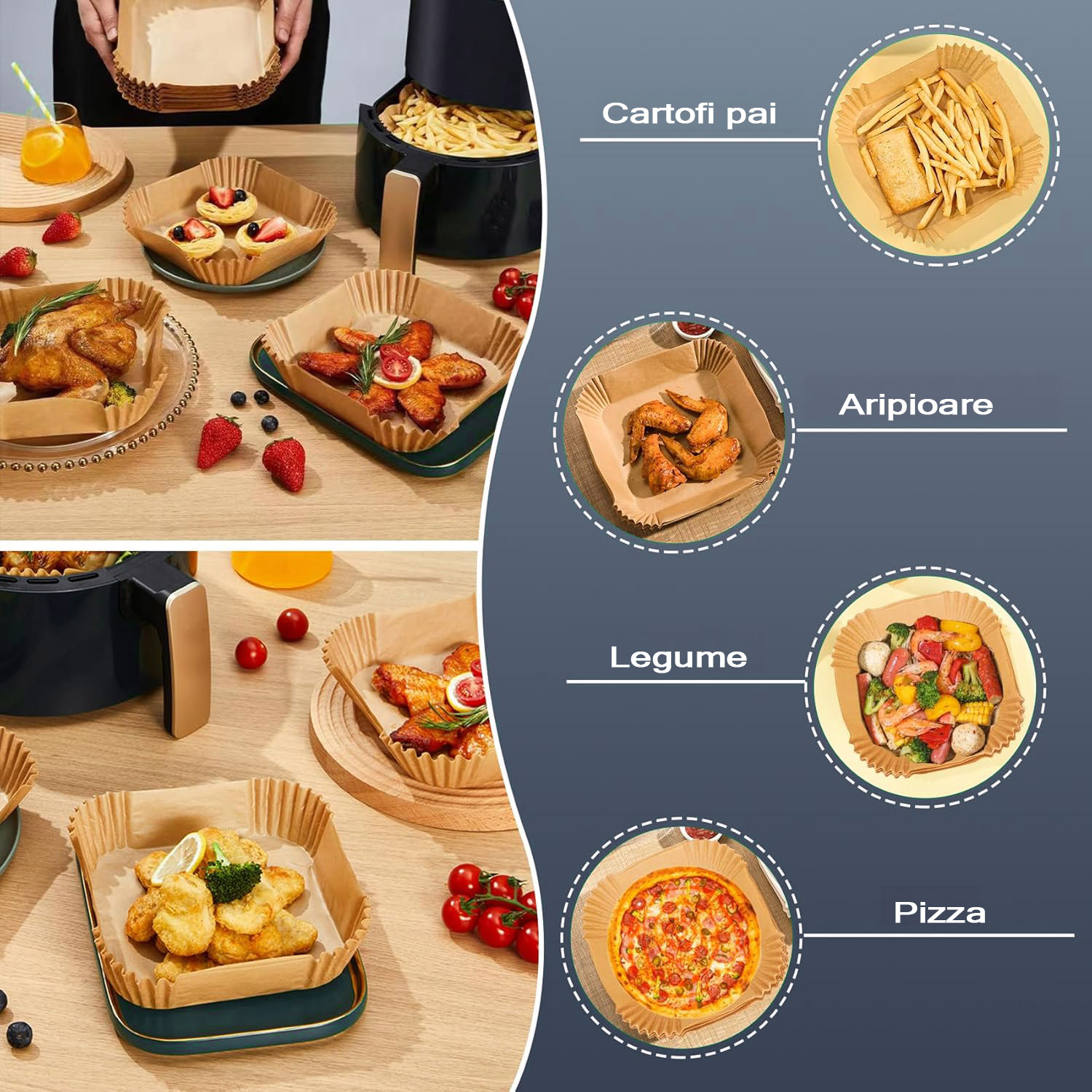 Set 100 Hartii de Copt pentru Air Fryer, 16 x 16 x 4.5 cm, Maro – Gateste fara griji, curat si eficient!